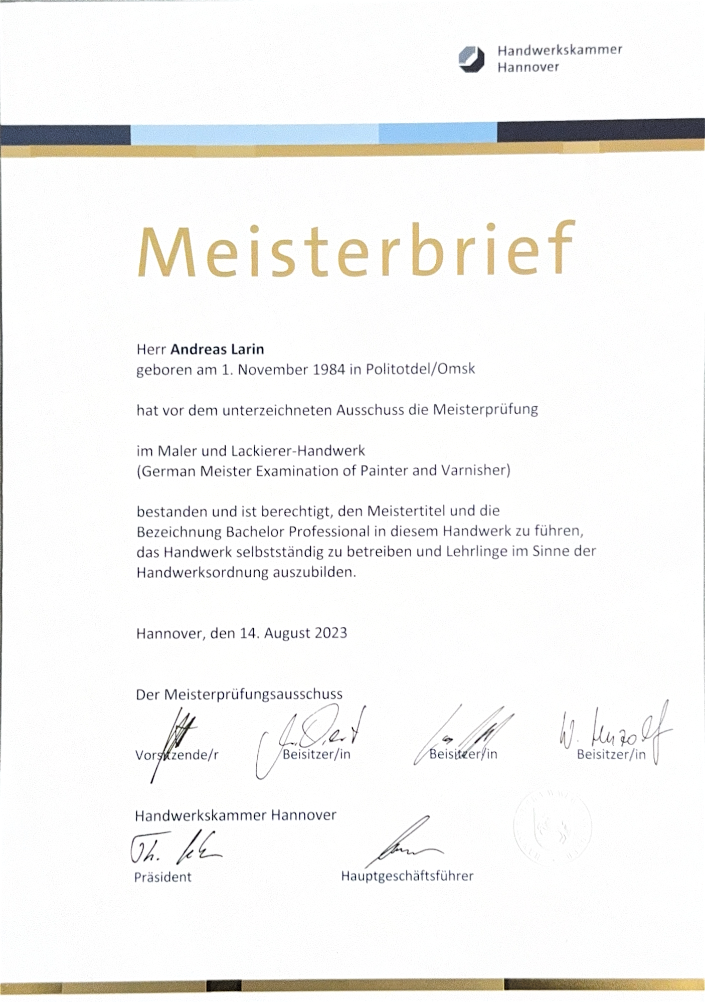Geprüfte Fachkompetenz – dokumentiert durch den Meisterbrief.
