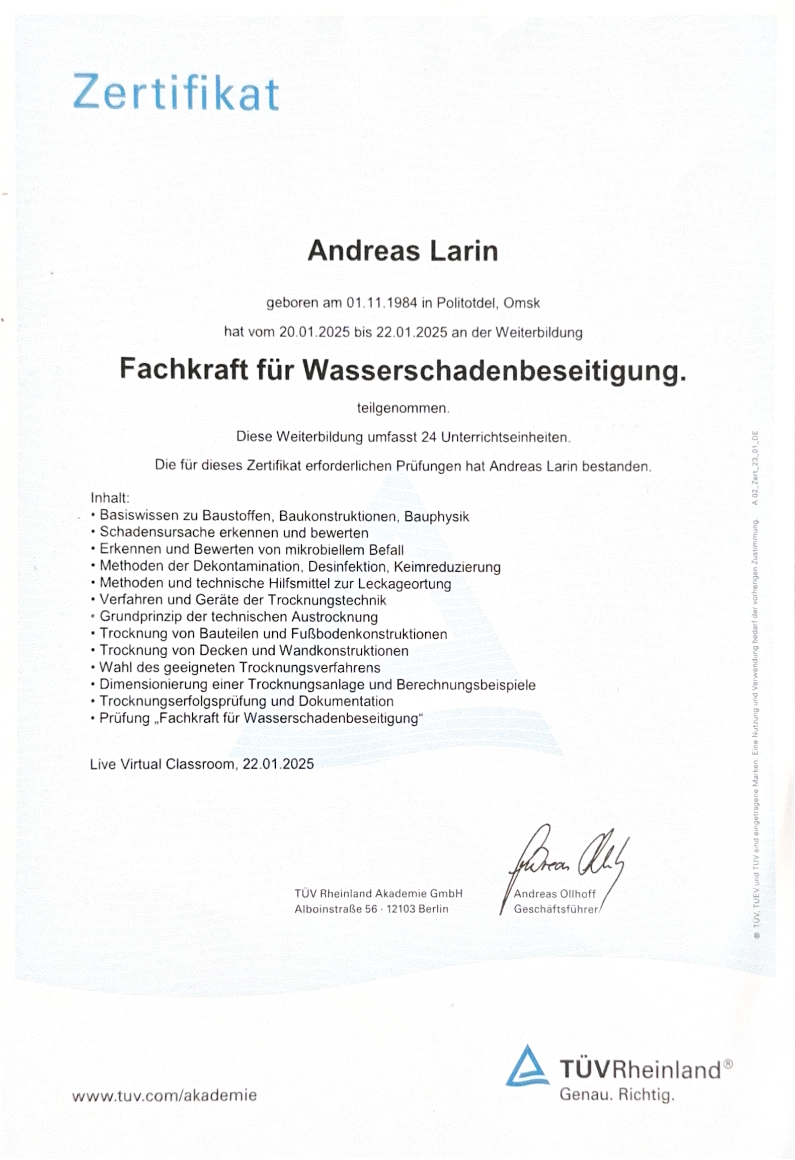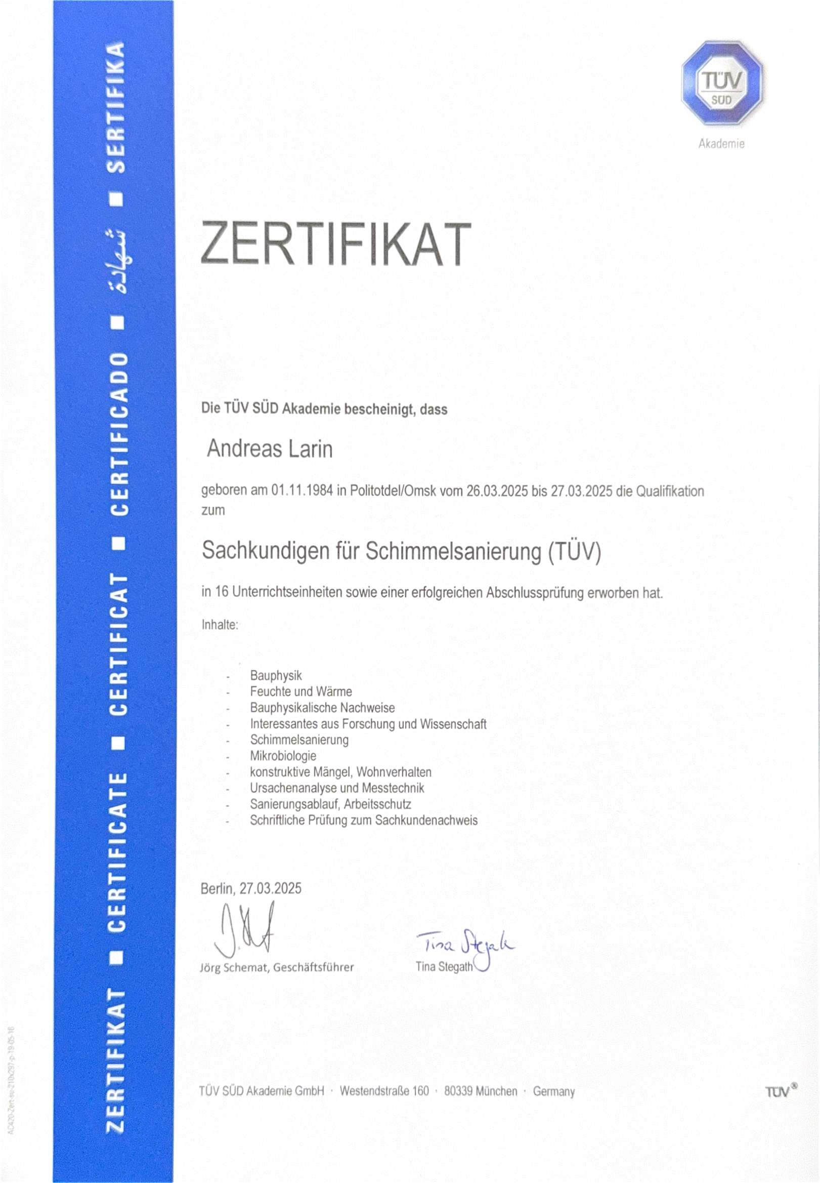 Wir legen Wert auf Transparenz: Hier sehen Sie den offiziellen Nachweis unserer Qualifikation.